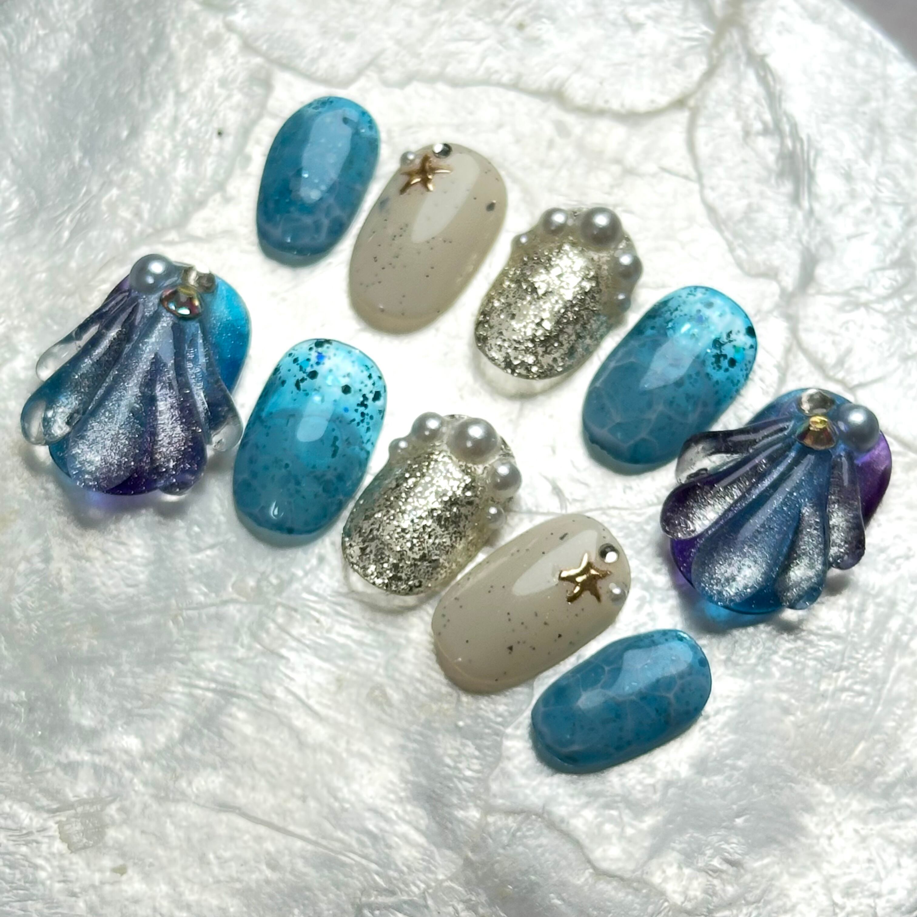お客様に合ったサイズのチップで作成するため、購入時にチップサイズをご記入ください(例:親指から右25468左25468)。