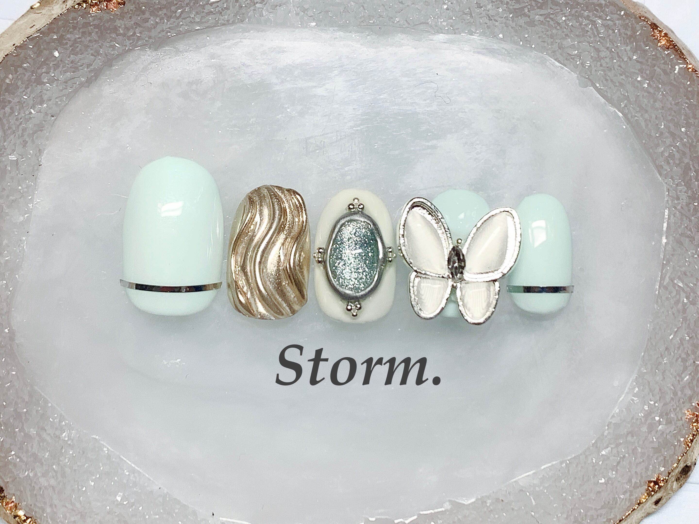 ネイルチップ*蝶・ミラー・ブローチ風