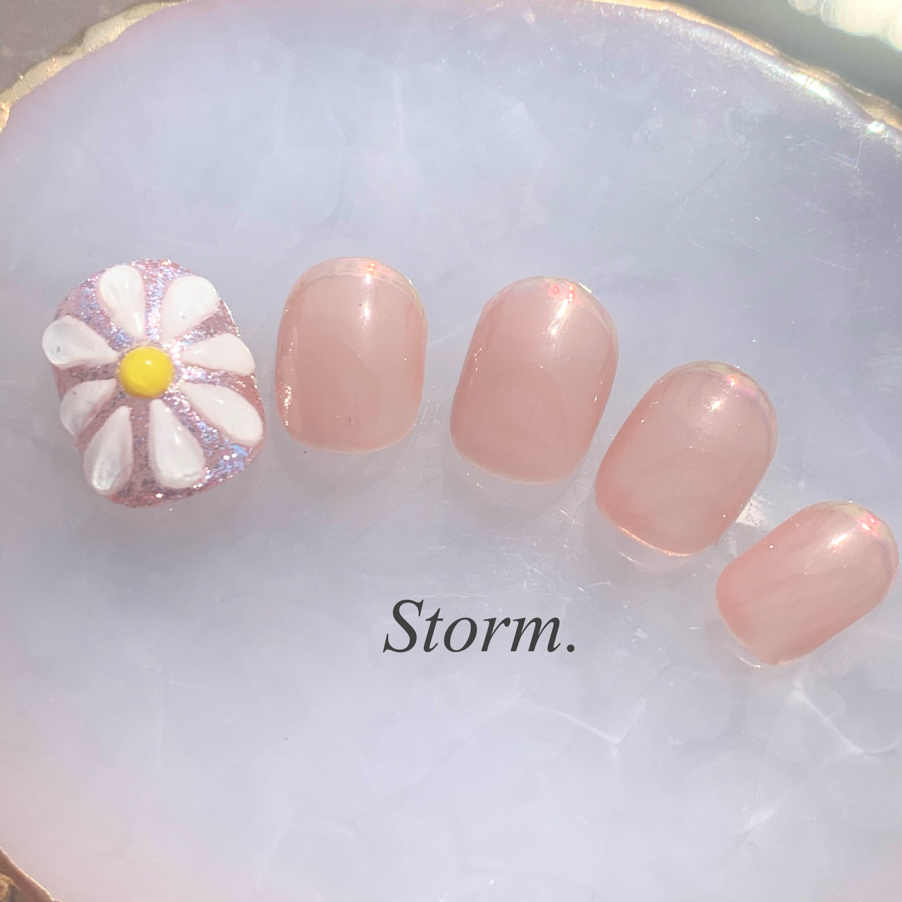 ネイルチップ*ぷっくりフラワー・オーロラフレンチ