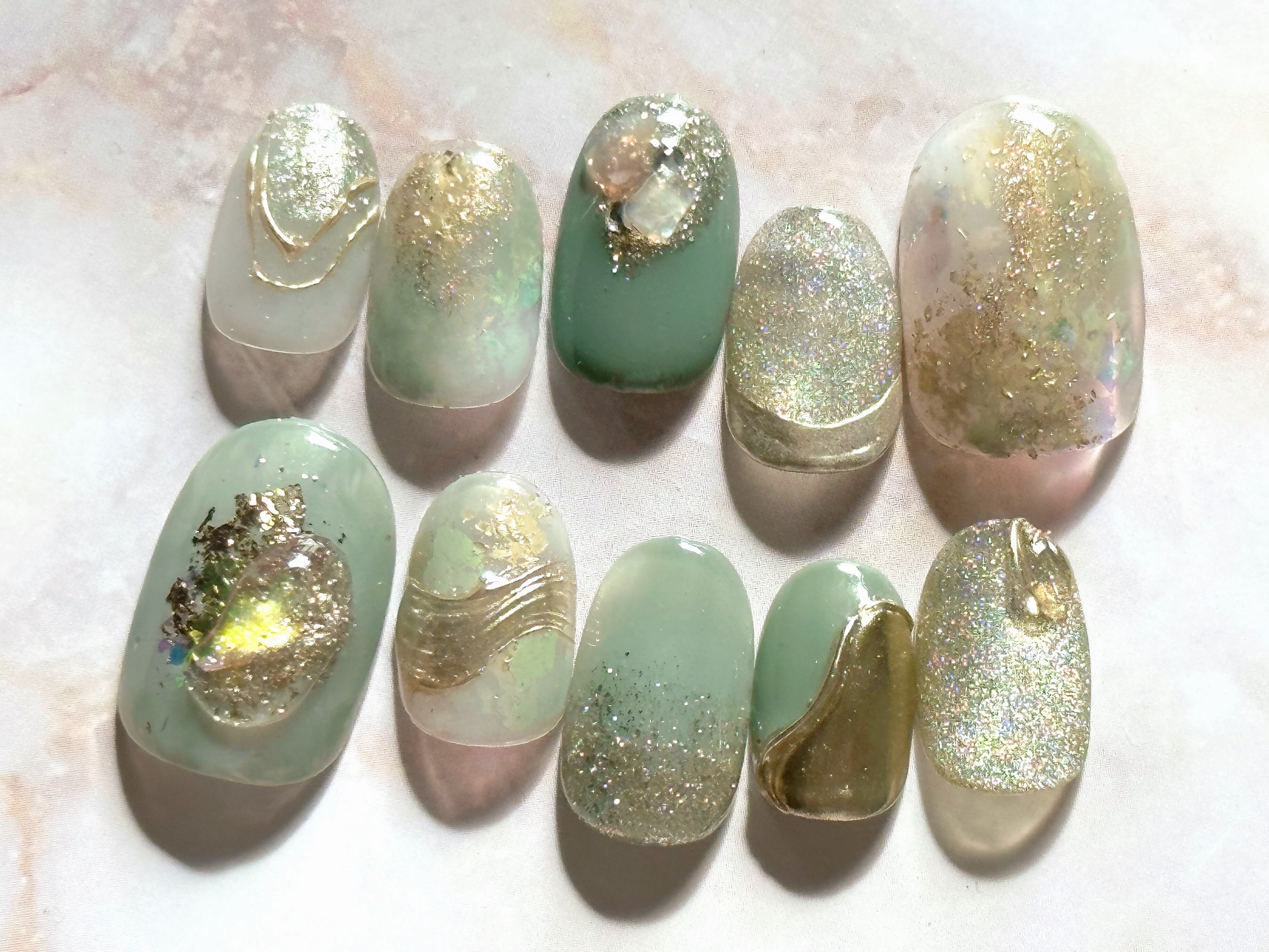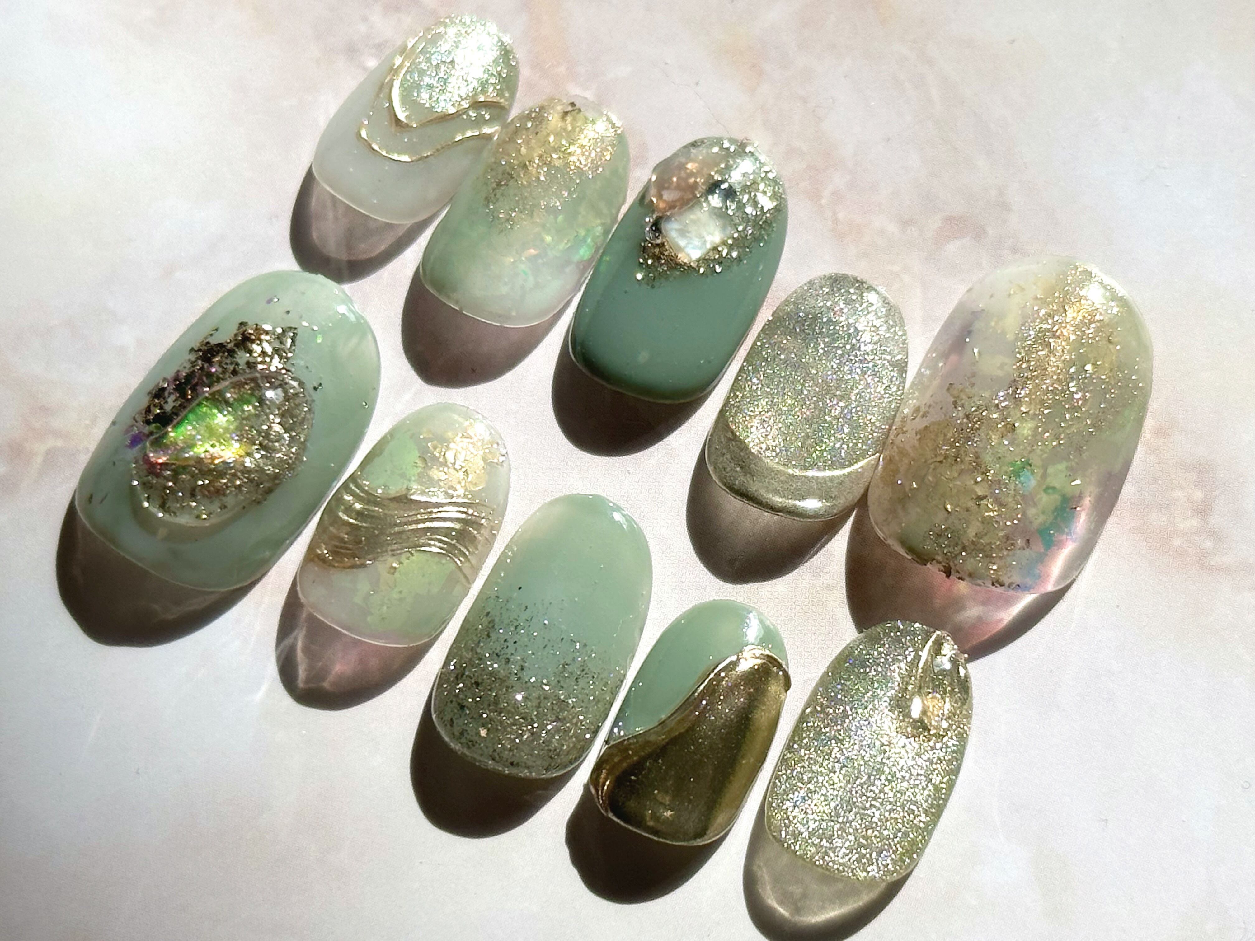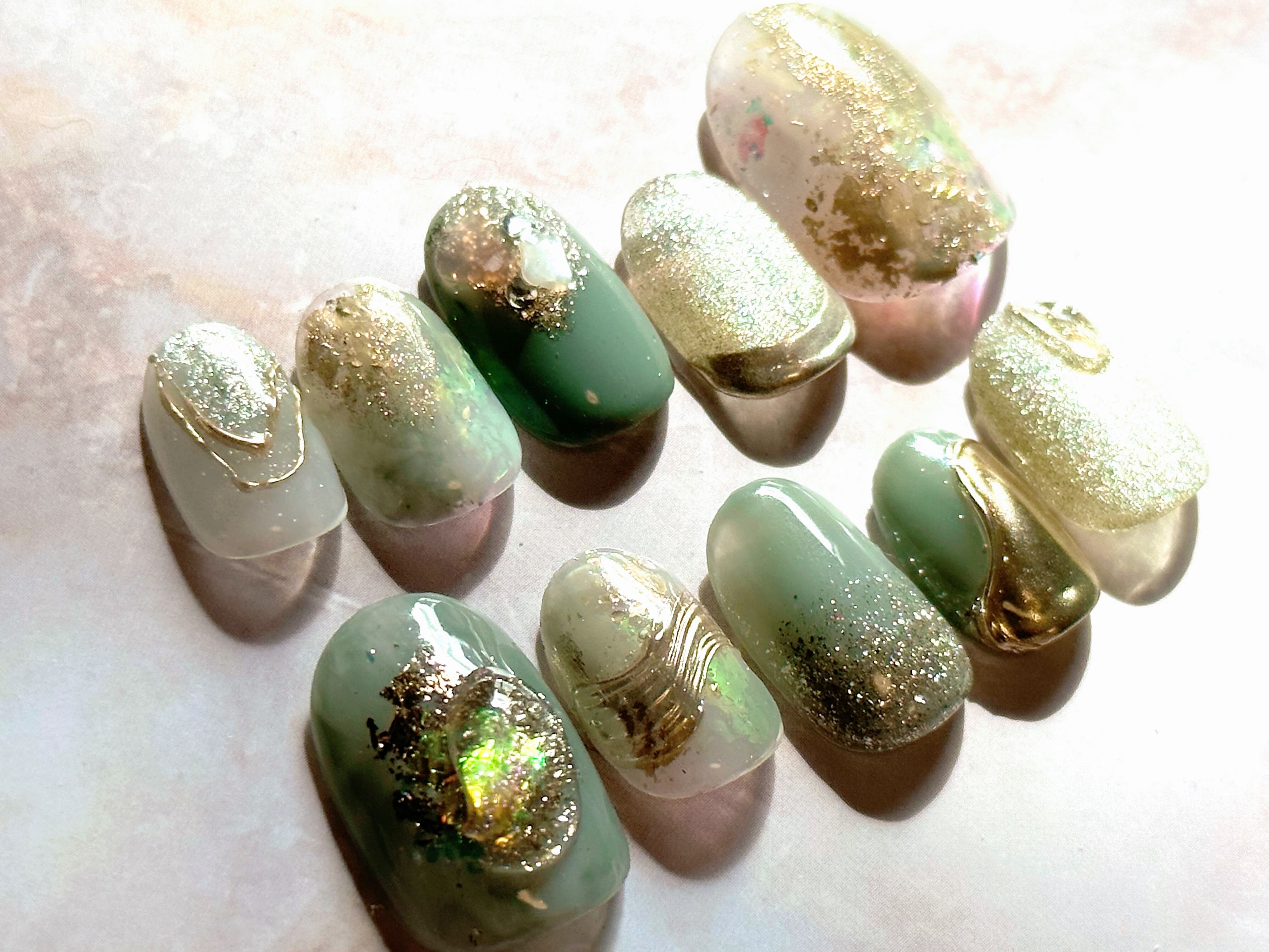 ネイルチップ*くすみグリーンネイル
