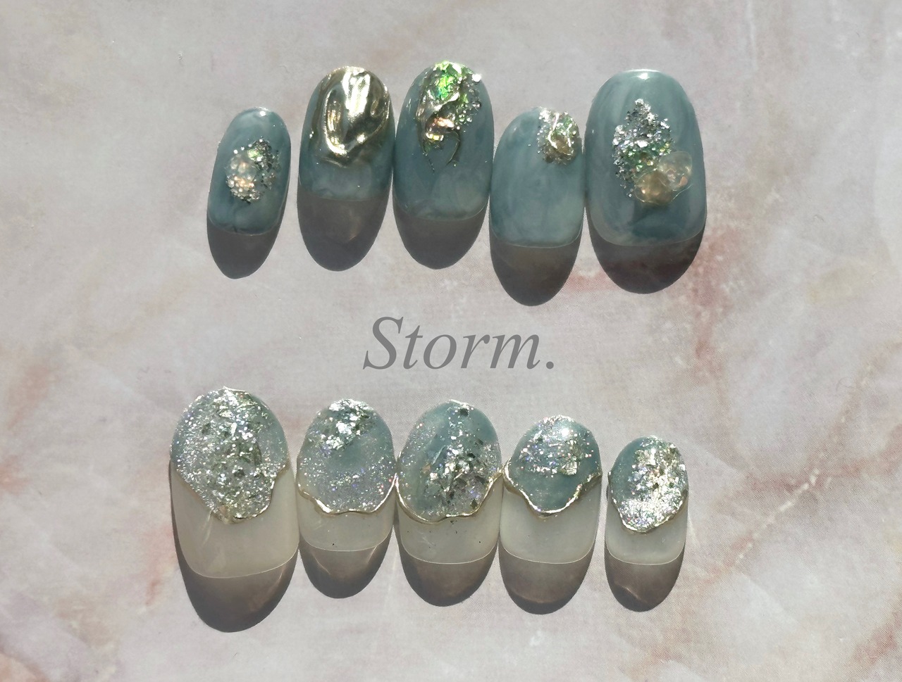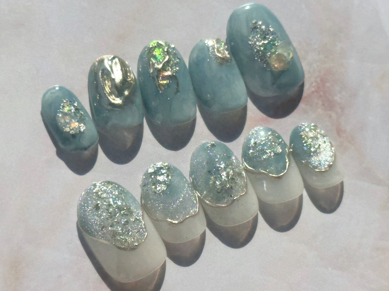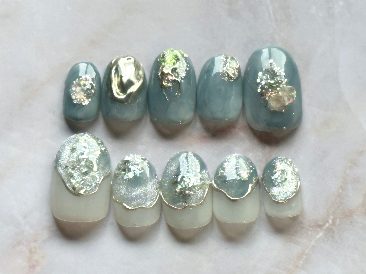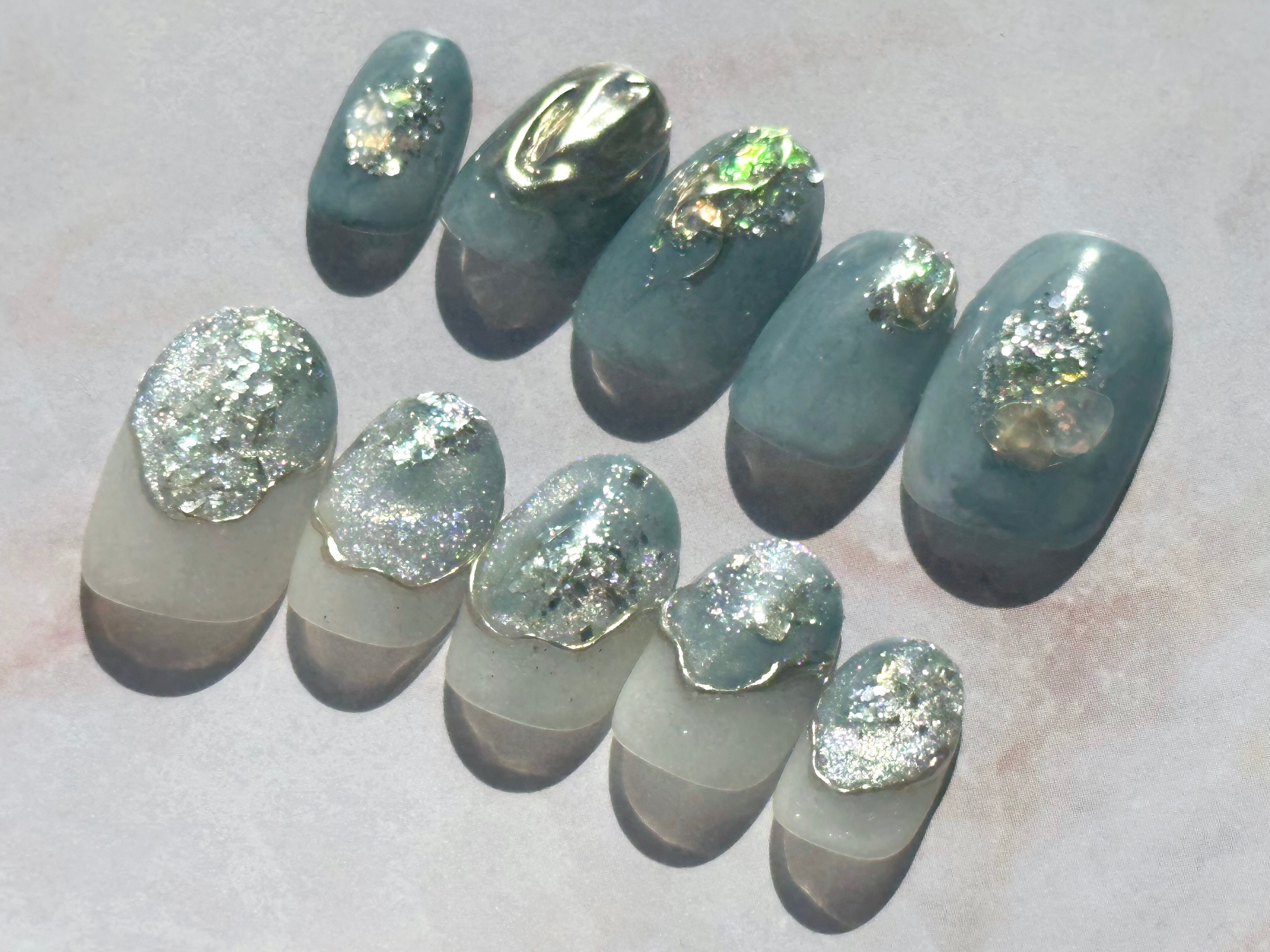 お客様に合ったサイズのチップで作成するため、購入時にチップサイズをご記入ください(例:親指から右25468左25468)。