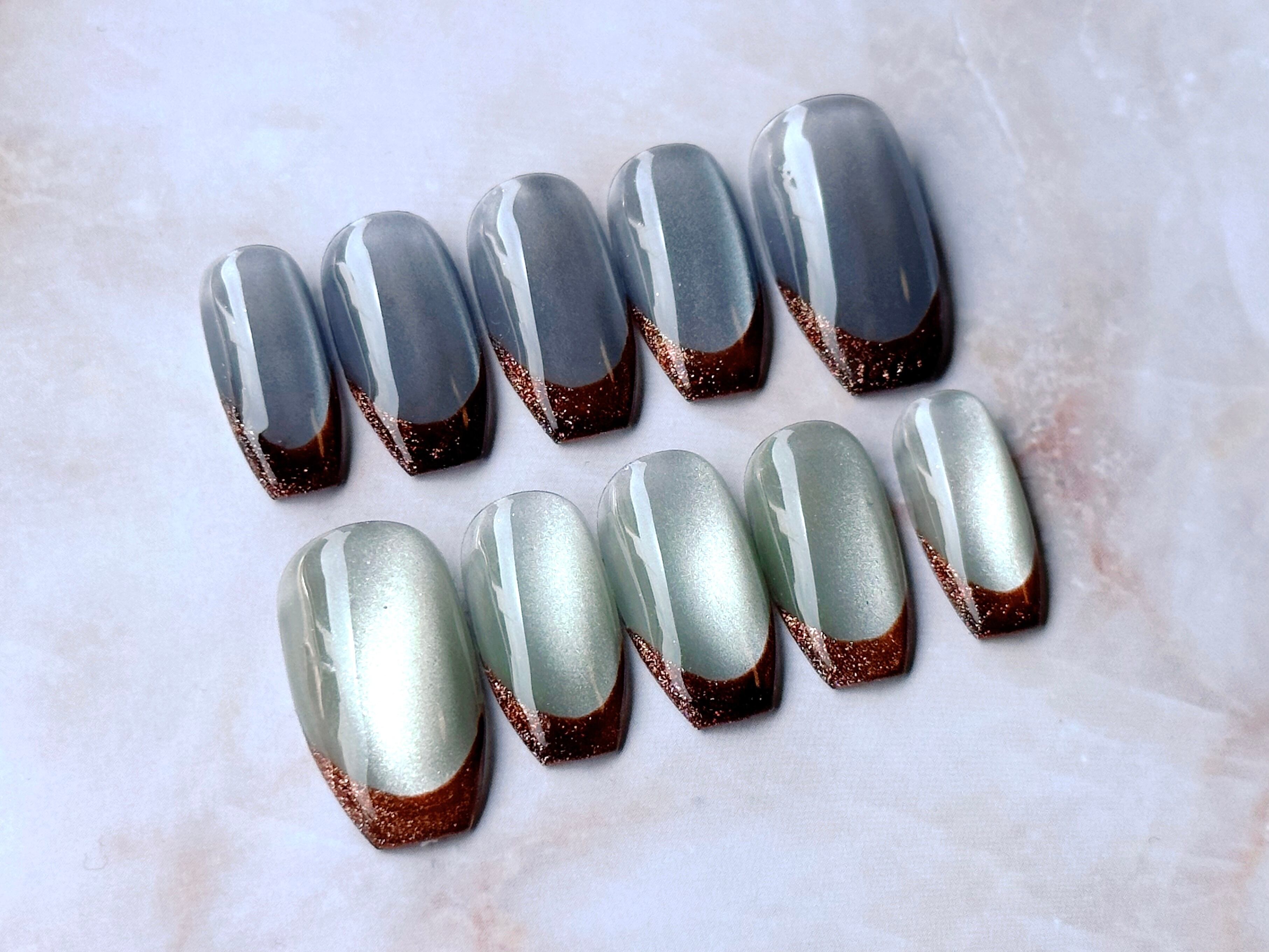お客様に合ったサイズのチップで作成するため、購入時にチップサイズをご記入ください(例:親指から右25468左25468)。